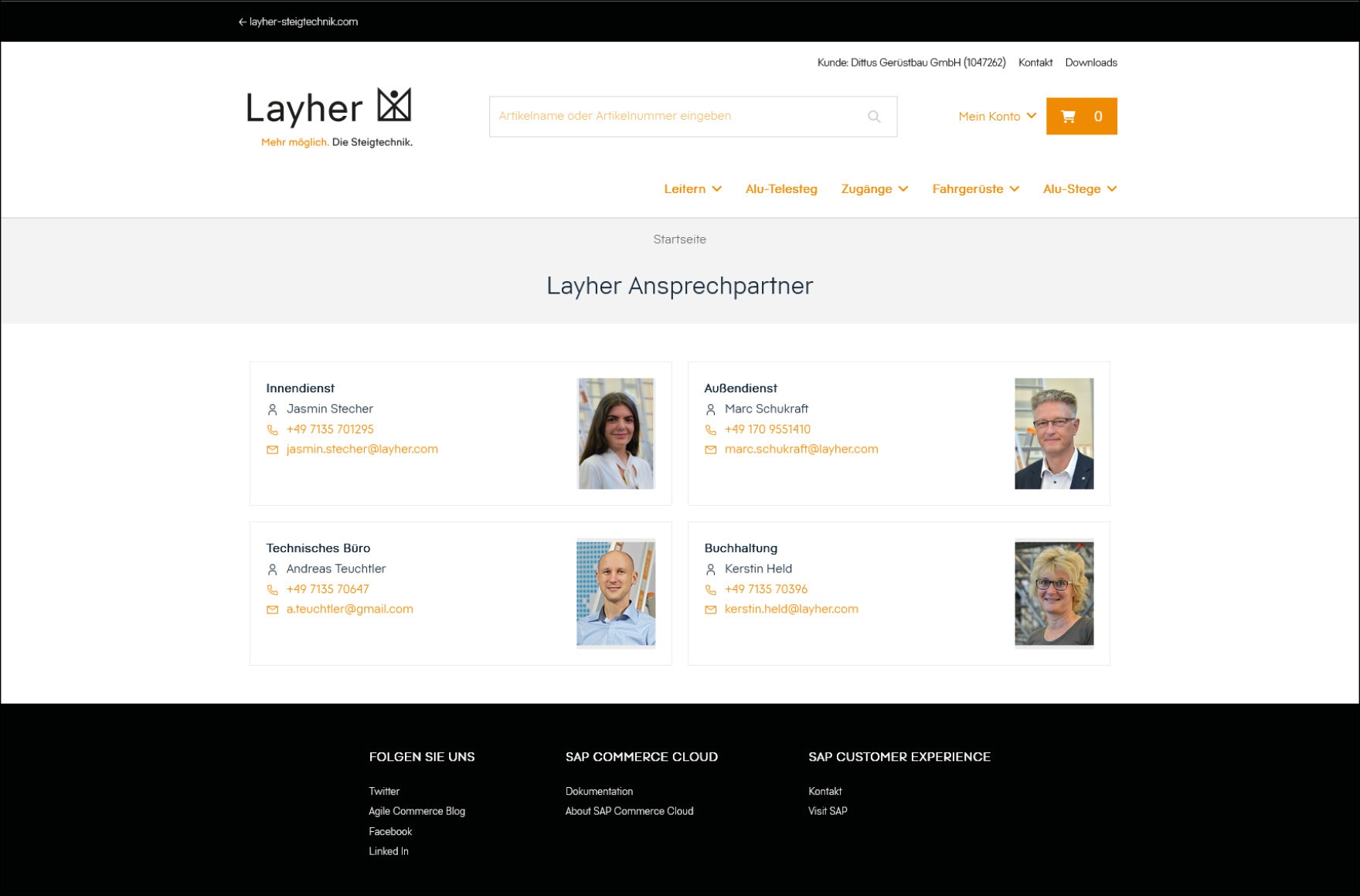 - Anzeige von persönlichen Layher Ansprechpartnern